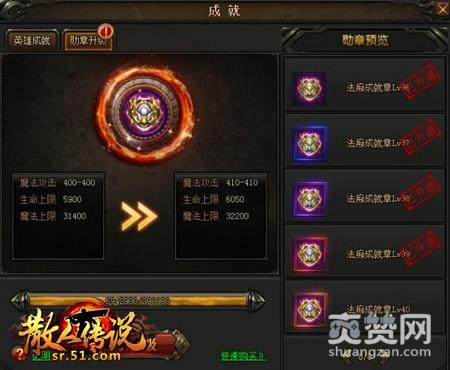 玩家到达50级就可开启成就系统,可以通过登录、升级、杀怪、击杀boss、升级翅膀、完成副本、与玩家PK等方式来完成成就,获得成就积分,获得的积分可用于升级成就勋章。成就勋章可以增加物理攻击、魔法攻击、道术攻击、生命值、魔法值属性。成就积分的获得可以通过快速购买(商城购买)或者活动掉落。