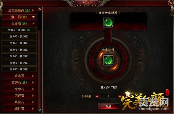 除了镶嵌外,玩家所获取的宝石还可以进行合成——在游戏中的物品合成界面,选择“宝石”类别,或直接从宝石镶嵌界面中点击“宝石合成”按钮,都可进入简单直观的宝石合成界面。在该界面下,玩家可以预览所有可以进行合成的宝石种类及数量,并进行合成——每三个同色宝石,可以合成为一个更高级别的同色宝石。