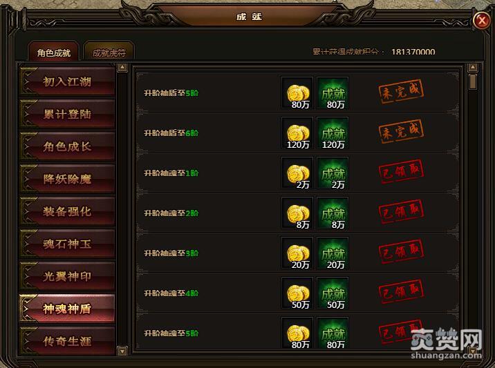 升阶神盾至5阶。可获金币80万,成就积分80万。