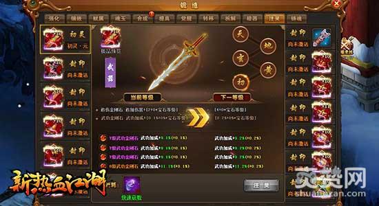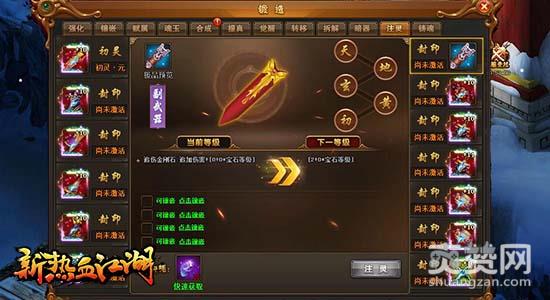 腾讯《新热血江湖》中共有12个部位的装备可以进行宝石注灵,每件装备未进行注灵之前都处于封印状态,注灵则可以激活封印。宝石注灵共分为天、地、玄、黄、初五种状态,注灵等级越高,效果也越强大。