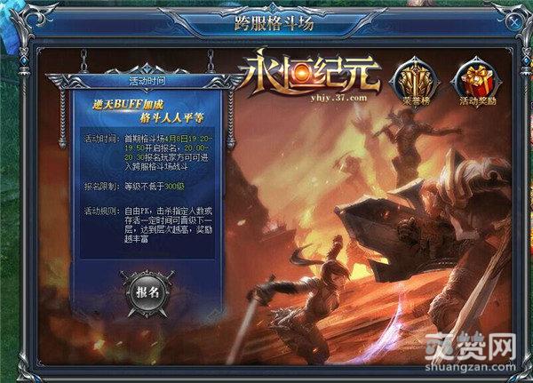 对37《永恒纪元》页游版的跨服格斗感兴趣的玩家可以在每周日19:20-19:50报名,活动开启时间为每周日20:00-20:30,系统会将玩家从游戏服传送到跨服格斗场,随后可进行战斗,活动有参与条件,规定开服天数必须大于8天,人物角色等级大于300级才可参与。