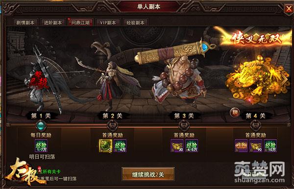 副本之行,是诸位豪侠在武林中奠定地位的基础方式。为了增强可玩性,37《太极崛起》中设置了多种副本供玩家体验。既有单人副本满足一人单枪匹马的快感,又有多人副本可以和三五好友组队闯江湖。其中单人副本又分为剧情副本、进阶副本、问鼎江湖、VIP副本及经验副本,让诸位在体验惊险剧情的同时又能获取大量的经验和进阶材料,结识良友,邂逅姻缘,挑战无上的荣誉。