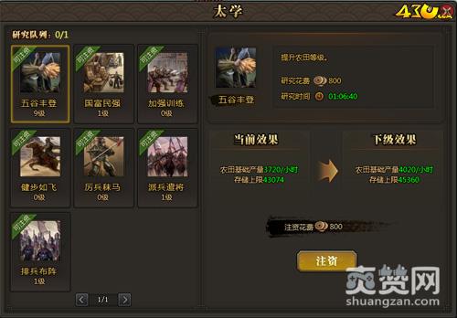 通过研究科技不仅可以增加武将、士兵的出战数量,还可以研发各项个人科技、提升收益哦!但是玩家需要消耗铜钱进行注资,研究科技是需要一定时间的,土豪可以使用元宝来立即完成。参与演武场的训练也可以提高武将、士兵等级来快速提升战力哦!