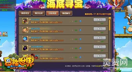 海底寻宝是腾讯《冒险世界ol》游戏内的一个限时活动,在活动开启期间,玩家可以体验海底寻宝、每日比拼、目标奖励、海底集市一系列的全新游戏内容。