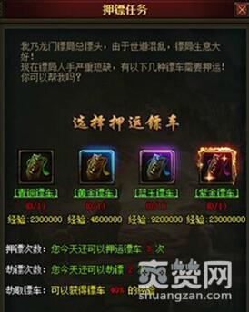 在923yx《天神战BT》中行走江湖怎能囊中羞涩!923yx《天神战BT》中的致富之路有许多,今天小编要给大家介绍的就是其中的押镖任务。不过要想押镖,大家首先要收集到足够的押镖令哦!