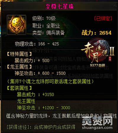 9377《赤月传说2》魂之龙珠全面提升,可通过神炉合成龙王专属装备——至尊七龙珠。9377《赤月传说2》龙珠全面提升了龙王与角色的属性,佩戴后玩家将更加犀利哦。