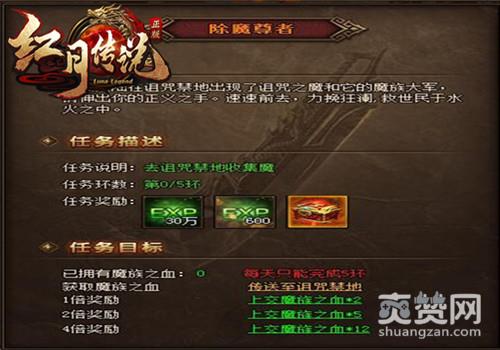 51《红月传说》还可以每天接诅咒禁地的任务,但这是个循环任务,合计可以上缴5次魔族止血,进入诅咒之地地图后在里面达到相应的魔族止血出来后可以领取奖励。但小编提醒大家此任务的奖励是分为1.2.4倍的奖励,别忘记将技能领取最高的奖励哈!