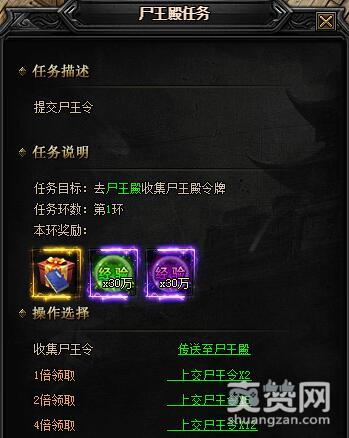 尸王殿虽然名字恐怖了点,但挑战难度不高。里面的终极BOSS——暗之尸皇每隔20分钟即会刷新,成功击杀就会掉落尸王令,尸王令可以兑换丰厚奖品。大家在捡取尸王令后即可与张定山对话,领取本职业技能书与经验奖励。
