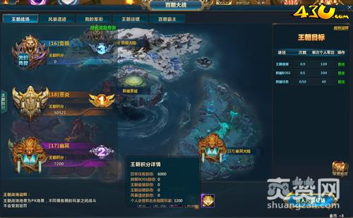 不同服务器的玩家之间战斗不会受到惩罚的43u《武动乾坤》王朝战场场景为PK战场,在跨服战场中玩家可以进行跨服任务、跨服BOSS、王朝偷猪等玩法。丰厚的黄金战甲头饰、黄金战甲上装、妖眼培养丹、绑定元宝、荣誉奖励也是很吸引人的哦!