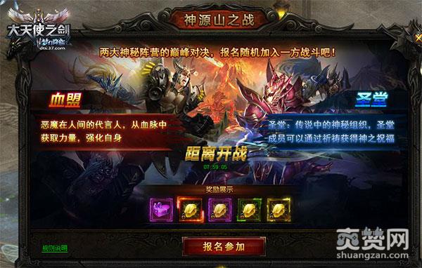 在37《大天使之剑》中,每周三、周日中午12点,双方阵营开始接受报名。等级≥2转450级的玩家,只需在报名界面中点击报名按钮,即可成功报名参加比赛。
