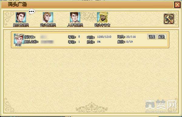 升级舰队最简单的方法就是给舰队补充船只了。进入码头广场的舰队管理员处,我们可以对自己的舰队进行调整。