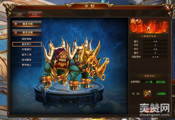 坐骑副本:可获得坐骑碎片来提升坐骑的的等级,也会掉落大量的装备和坐骑丹,随着副本的难度提升,奖励随之增大。