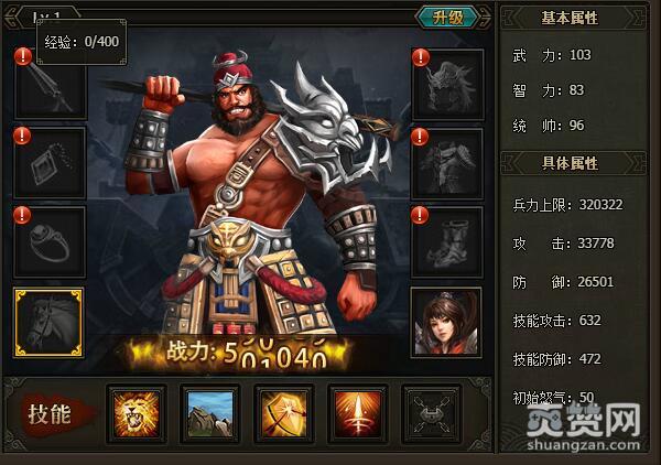 狮子吼:对自身周围8格范围内最多20个敌方单位造成伤害,距离越远伤害越低,并有几率降低攻击,持续10秒。