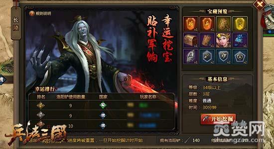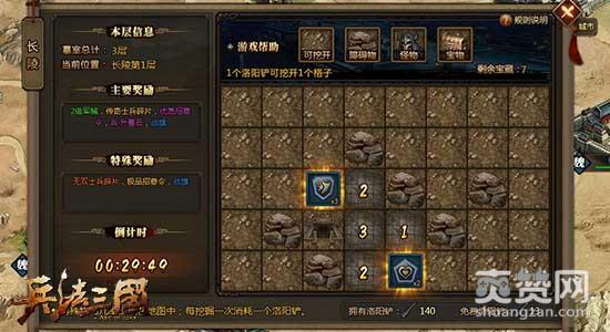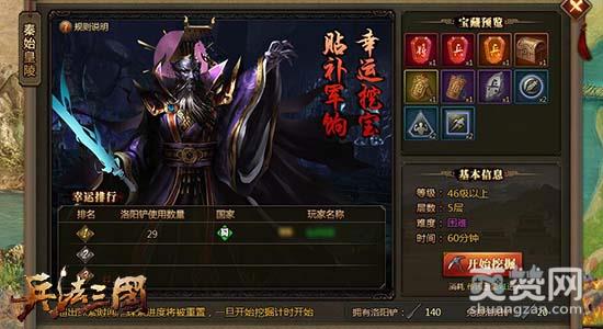 在腾讯《兵法三国》中共有长陵、霸王陵、秦始皇陵三大皇陵宝藏,玩家在获得不同的宝藏钥匙后可以打开对应的皇陵宝藏进行探索。每个宝藏都有多层地图,使用洛阳铲可以挖掘地砖,获得隐藏的物品以及发现下一层的入口。