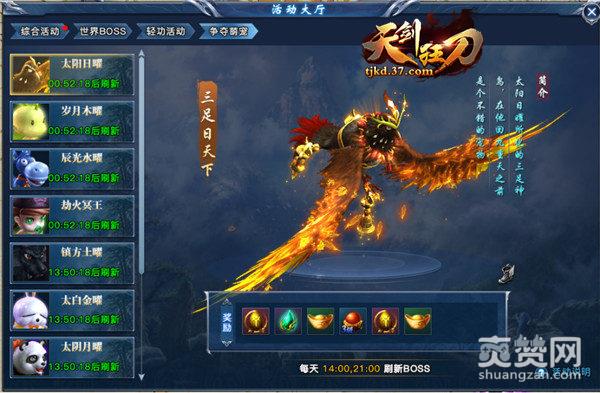 37《天剑狂刀》的萌宠争夺战将于每日14:00和21:00刷新BOSS,每个宠物BOSS场景有人数限制,击杀宠物BOSS后会掉落道具,玩家拾取道具并占据60秒即可完全获得该道具,如果中途死亡或退出场景,占据中的道具会重新掉落,其他玩家可以拾取,活动结束时,玩家直接获得所占据的道具。