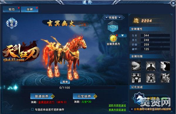 除了萌宠,37《天剑狂刀》的坐骑也是不容错过的玩法,游戏里的坐骑不仅仅是一种交通工具,更是为你上阵杀敌的好助手,为坐骑进阶,增加坐骑属性的同时,这些属性同样会增加到角色身上。坐骑进阶分为普通培养和元宝培养,普通培养需要消耗“坐骑进阶丹”,该道具可以通过通天塔、商城购买以及各种活动奖励等获得。