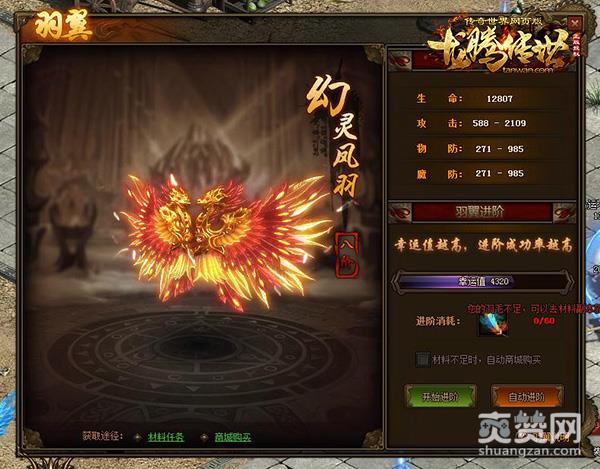 想要游戏玩的爽,角色的超高战斗力是最佳的保障。贪玩《传奇世界》网页版的游戏角色等级满足要求以后就能开启羽翼系统。羽翼总共分为15阶,每升级到下一阶的羽翼都有自己独特的外形和强大的属性加成。羽翼升的等级越高,造型就越发霸气炫酷,属性加成也更加强大,压制敌人羽翼能提供超强助力。提升羽翼需要消耗羽毛,活动礼包购买可得。