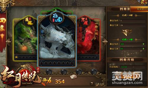 青龙、白虎、朱雀、玄武,这个是中国 的四大神兽,在《红月传说》中,将他们综合到四象系统,多多提升四象的数值也可以将玩家的综合战力提升到一个新的阶段,游戏等级达到39级就会开启四象系统,四只神兽分别给予玩家不同属性加成,注入对应神兽灵力即可升级该神兽魂魄并提升属性;点击主界面四象按钮,即可进入四象系统进行灵力注入!