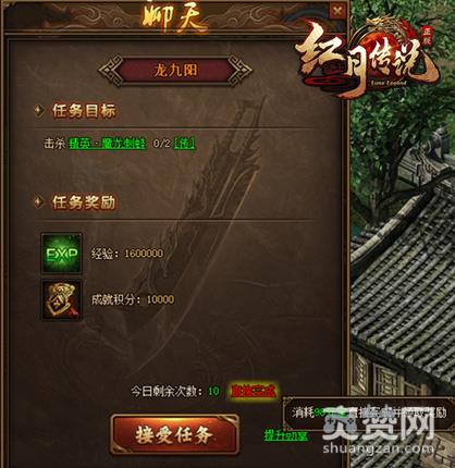 51《红月传说》精英篇:每天精英任务需做10次,每次击杀2个精英·魔龙刺蛙,任务完成可获得经验1600000,成就积分10000,不想做但想要经验,有元宝的小伙伴可以点击‘直接完成’消耗98元宝可直接完成并领取奖励,想要都完成记得要点击10次。
