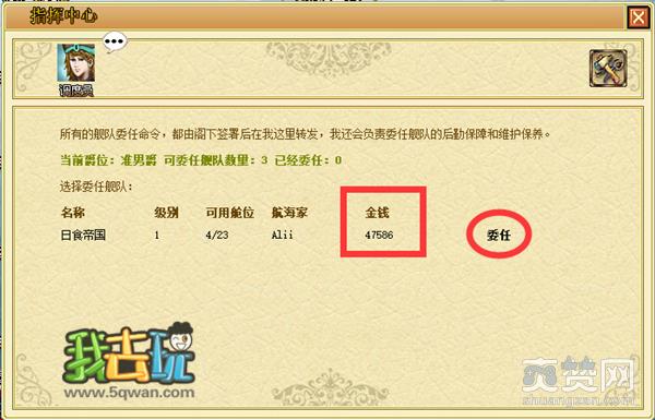委任的时候,你需要给舰队足够的金钱,确保舰队的续航能力,让调度员可以更好的带领你的舰队进行贸易。如果目前你的舰队没有足够的金钱,那么你可以去码头广场的舰队管理人处调整舰队的携带金额。