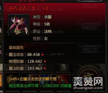 不朽法衣。5转以上法师可装备。提供魔法攻击88-438点,物理防御128-642点,魔法防御193-963点。