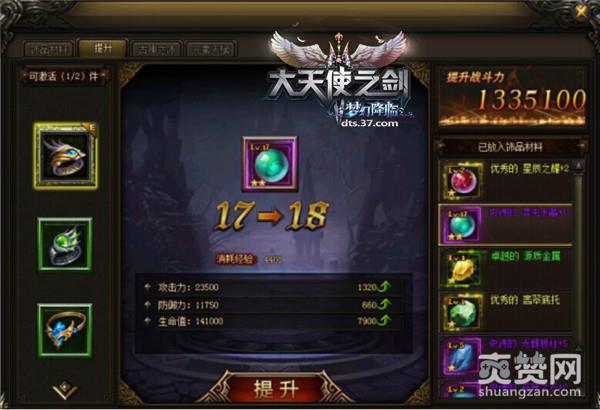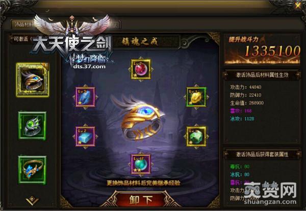 饰品的品质越高,放入的材料品质要求也越高,在37《大天使之剑》中,如果想要看到材料的要求,只需要用鼠标移向部位并停留片刻就能看到,每个材料增加的属性也非常可观,玩家可以通过神源山之战获得,想感受饰品的强大的玩家大大们,就要多多参加活动啦!