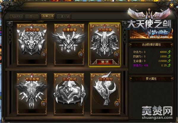 37《大天使之剑》的玩家只要参加神源山之战,就能获得夜鹰徽章的升级道具,另外剩下四个古神之饰的升级道具,可在寻宝系统中获得,至于远古战盾的升级道具现还未公布获得办法,喜欢这一个古神之饰的玩家就请静候游戏通知吧!