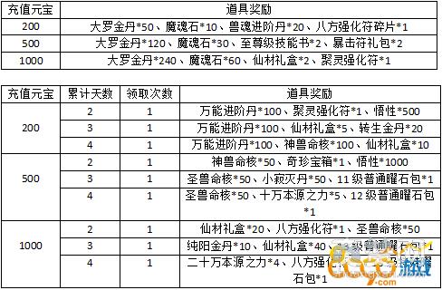 1、活动期间,玩家每日充值相应元宝可获好礼。