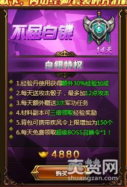 XY游戏《梁山传奇》白银特权卡到底是什么?