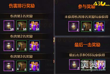 没有获得排名奖励的玩家也不要灰心,43u《魔法风云纪》公会BOSS还是有参与奖励的,BOSS掉落的珍惜物品可在击杀BOSS5分钟后在公会仓库中兑换哦!