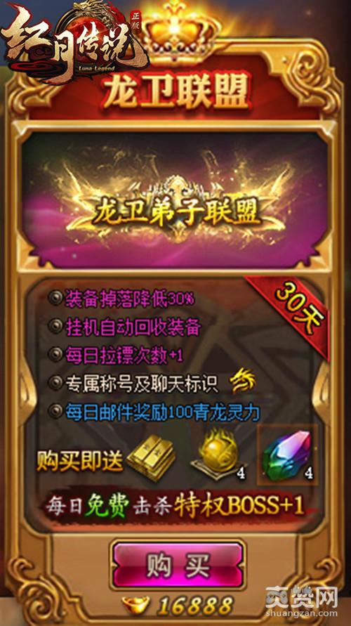 51《红月传说》每天有三次押镖时间,共有三种押镖分别为普通镖车、精致镖车、华丽镖车,每天可以押镖2次,但喜欢拉镖的童鞋,可以花费16888元宝开特权《龙卫联盟》,每日拉镖次数+1,开了特权每天可拉3次镖车,友情提醒特权的有效期是30天哟!