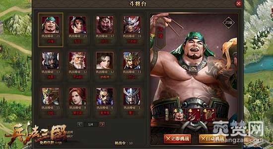 武将每次挑战成功后,斗将台中对应武将的镜像则会提升一个等级,升级后的镜像将越来越强大,武将的挑战也更加困难。在游戏中获得挑战令可以额外增加挑战次数,选择自己需要培养的武将,进入斗将台中接受挑战吧!