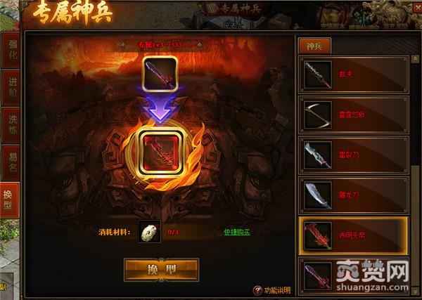 目前在360uu《传奇世界》网页版的专属神兵系统内,共有三大养成手段,强化进阶与洗炼。在强化系统中,通过完成神魔阵营任务获取兵魂值,并消耗强化,全方位提升玩家攻击力,强化至满级后其属性更可媲美太初武器;进阶系统将在强化六等级开放,成功进阶即可赋予你暴走技能,进入暴走模式,刀刀皆可暴击,瞬间斩杀对手;洗炼系统则能够提升神兵传奇属性,赋予全新的特效。360uu《传奇世界》网页版专属神兵来袭,加入这个世界,亲手打造神兵,携手共闯沙城!