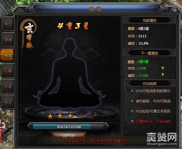 3)内功经验可通过杀怪获得。