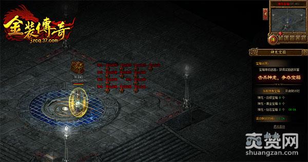 在37《金装传奇》中,终于有英勇之士打开了通往神龙岛屿的路径。现在,神龙宝箱活动在每周一、三、五晚19:25至19:40进行,玩家可通过神龙宝箱NPC进入神龙宝箱地图,活动期间玩家的名称和时装以及所有的普通称号将被隐藏,地图强制为全体模式。