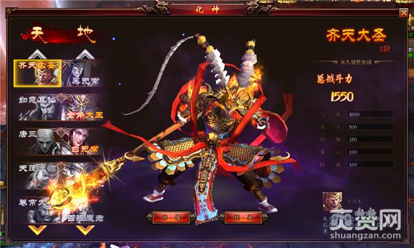 闯荡西游岂能不体验一次齐天大圣,360uu《大话女儿国》化神系统来袭,天象异变,星宿混沌,在这里收集天星神魂即可化身神将,游戏中为玩家们提供了众多天地神将供玩家变身,玩家可同时出战天地神将各一位。齐天大圣、黑白无常等强大神将都将在此等你挑选,独一无二的强大技能,华丽震撼的变身特效,顷刻之间拥有毁灭万物的战力,更有一系列养成玩法等你开启,现在就加入360uu《大话女儿国》,开启化神立刻变身,一战三界群魔!