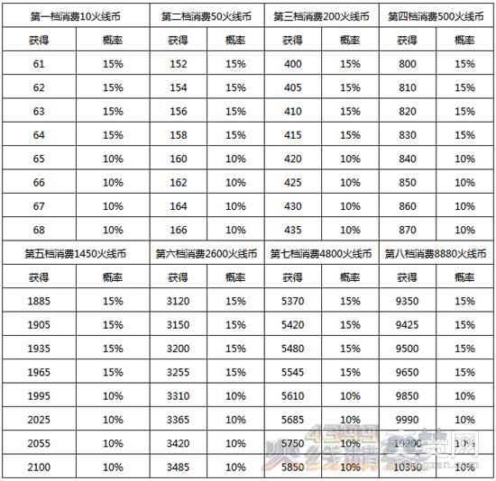 4、投入的次数越多,需要的火线币越多,收获也越大!
