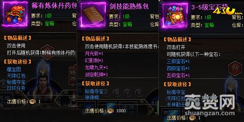 一起来看看43u《琅琊榜2》秘境夺宝的奖励吧!剑技能熟练包、3-5级宝石袋、稀有炼体丹药包这些奖励全都有!如果玩家不需要这些物品还可以出售它们哦!