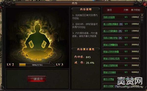 刷BOSS似乎已经成了页游不变的主题,每个传奇类页游好像都少不了这个套路,当然这样跟游戏强调的主旋律相符,毕竟这个游戏的宗旨还是PK打架为主。游戏中加入的许多经脉、转生、寻宝等玩法虽然极大的丰富游戏可玩性,不过游戏60级后的提升速度有点儿慢,转生和翅膀功能都要70以上才能开启,对于习惯了快餐式的页游的玩家来说,会略微有点不满。当然游戏的技能特效做的还比较绚丽的,打击感还有待提升。