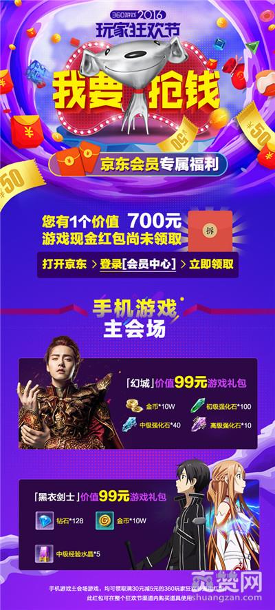 近日,360游戏与京东达成跨界合作,360游戏玩家狂欢节正式入驻京东会员,为京东会员和广大玩家准备了总价值高达2017万元的超值游戏现金礼包。在12月活动期间,玩家只要登录京东会员的360游戏玩家狂欢节活动主页,即可凭京豆在手机游戏、网页游戏、客户端游戏三个会场,兑换手游《幻城》、《黑衣剑士》,页游《生死簿》、《盗墓笔记》以及端游《桃花源记2》超值游戏礼包。除了特定游戏礼包外,360游戏玩家狂欢节还准备了360游戏平台通用充值5元红包卡,力求让每个玩家都能乘兴而来满载而归。