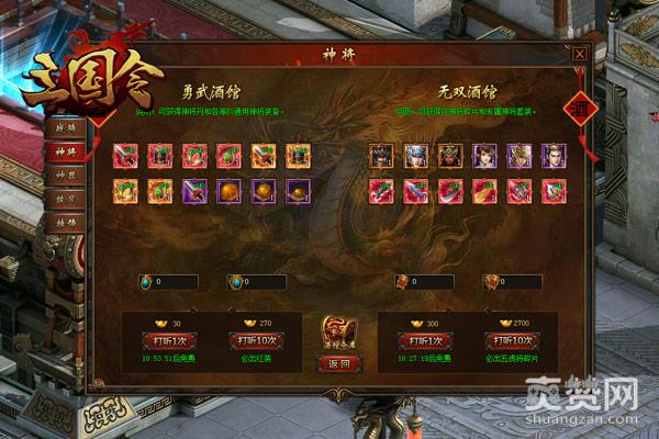 勇武酒馆:可获得神将丹和各等阶通用神将装备