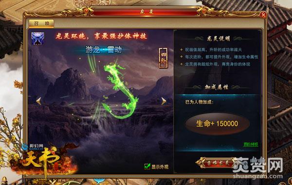 哥们网《天书世界》的龙灵,不仅能为角色带来大量的生命属性,而且环绕角色,为角色带来最强护体神技。