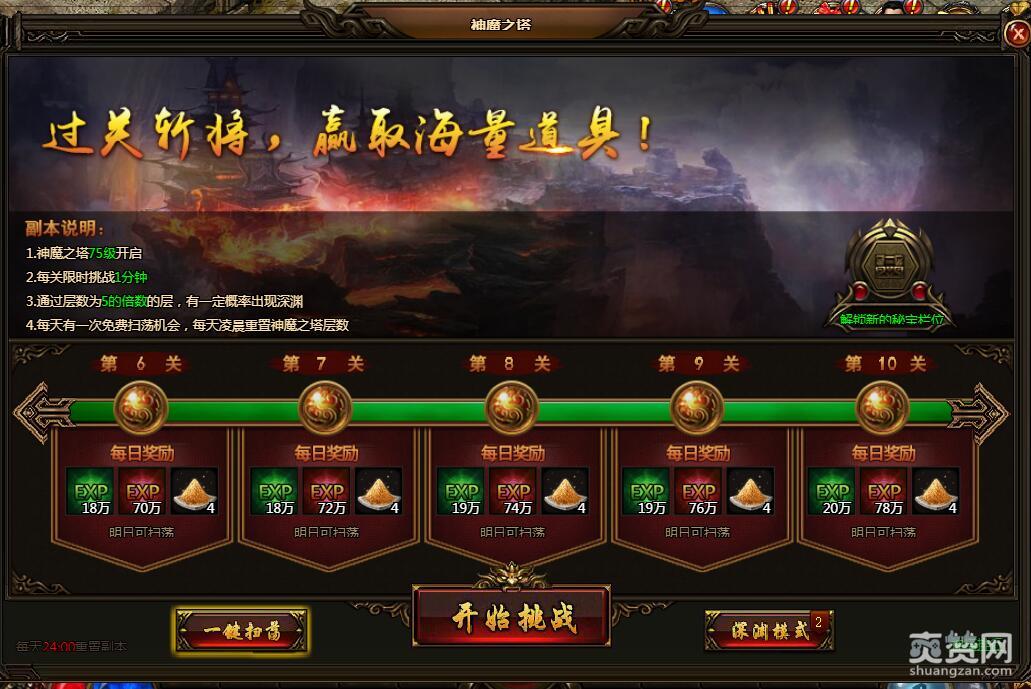 第6关:角色经验*18万,英雄经验*70万,秘宝粉尘*4。