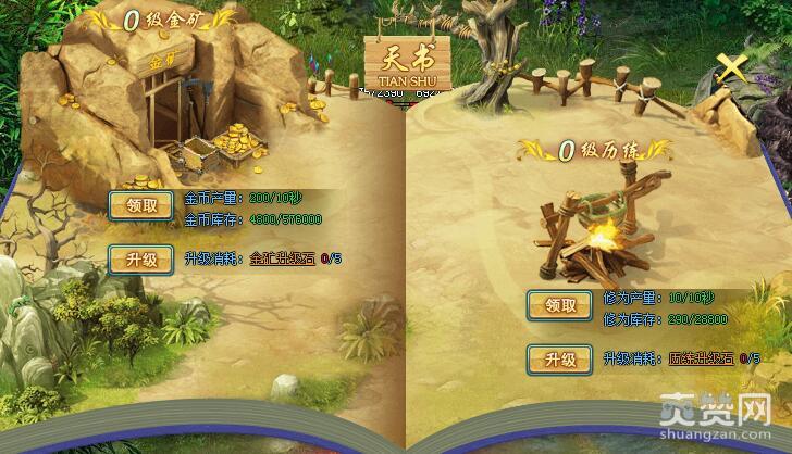 神秘天书藏着无数珍宝,玩家到达一定等级时可以开启天书系统,天书可以为玩家提供固定的每日金币加成,同时还能为玩家提供大量的修为,金矿以及历练需要对应的升级石来升级,升级石可以从商城购买或者活动获得,一次升级永久享受福利,离线照样赚钱!
