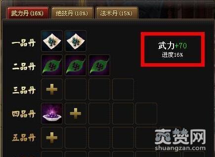有了足够的丹药制作卷后,只要打开“人物”按钮,进入人物界面,点击“丹药”进入丹药面板,即可开始制作丹药。在丹药面板中共分三种类型丹药,武力丹、绝技丹和法力丹三种。每种类型丹药共分为六个档次,并且,每个品次的丹药可服用数量要比前一个品次的丹药数量要多一个。
