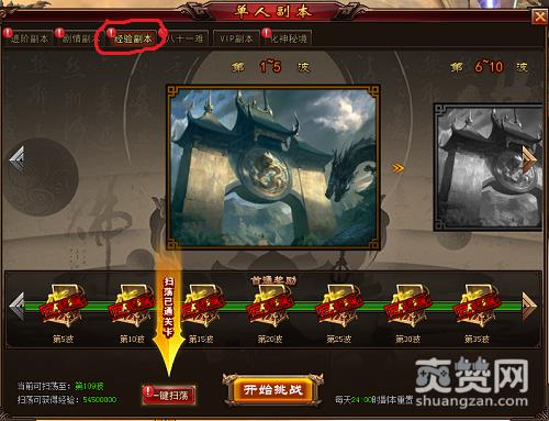 提升等级?除了任务,经验副本是首选!玩家点击游戏界面右上角的“单人副本”即可打开副本界面,点击“经验副本”,即可看到相关信息。在副本中,已通关的关卡可直接扫荡,扫荡用时为当前最快通关时间。