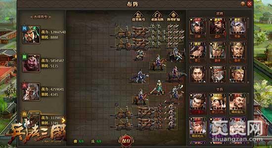 腾讯《兵法三国》中,每位主公最多可以同时指挥风、火、山、林四支军队,每支军队中最多可上阵10位武将与10队士兵。在布阵界面中,玩家可以自由排布每个武将与士兵,并可以为每支军队设置一名主将。