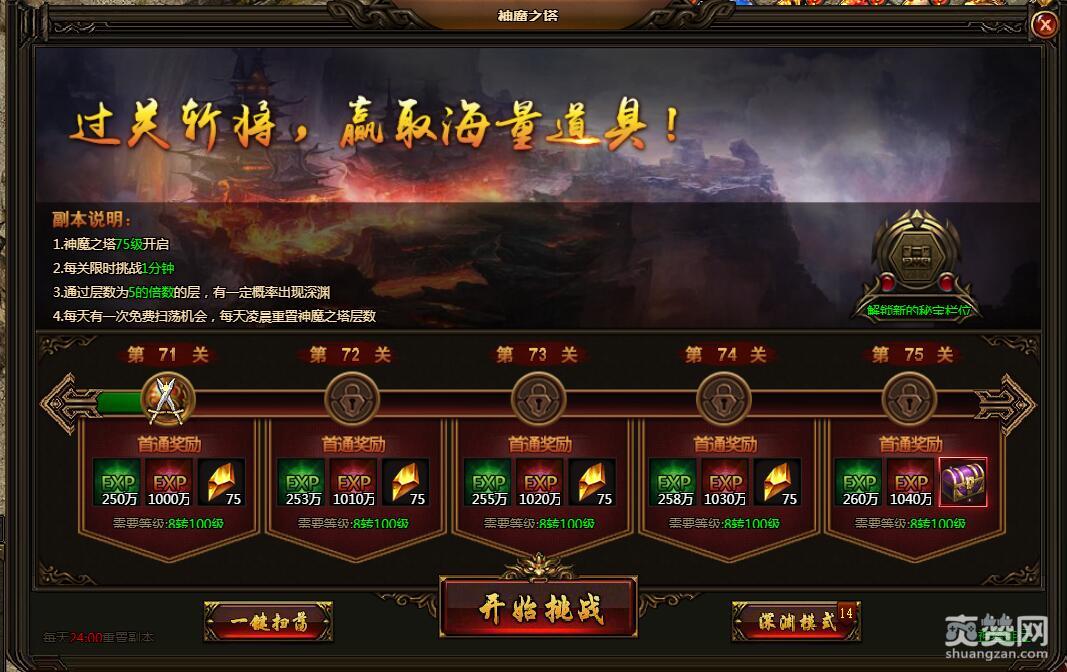 在XY游戏《刺沙》的神魔之塔中,还有一个深渊模式。通过层数为5的倍数层时,会有一定概率出现深渊。深渊的BOSS比普通BOSS明显要强出很多。今天,XY小编要为玩家朋友们介绍的是XY刺沙神魔之塔深渊模式挑战深渊·沃玛教主详解攻略,一起来看看吧。