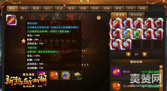 腾讯《新热血江湖》中有着多种不同的连锁,包括强化连锁、镶嵌连锁、附魂连锁、淬炼连锁在内,所有加成效果都可以在人物界面中的角色下方查看。
