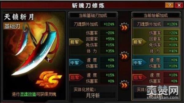 黑崎一护的斩魂刀为天锁斩月,卍解后天锁斩月最明显的优点就是速度,朽木白哉的卍解——千本樱景严也追不上他的速度。总之,一护的卍解把所有力量缩小集中,是一种将强大力量浓缩到极致的卍解。在游戏中,天锁斩月是一把SSS级别的斩魂刀,它可以为前军、中军、后军提供强力的速度、伤害等属性加成。不过作为游戏中最强力的一把斩魂刀,并不是轻轻松松就能获得的,玩家需要不断的努力才能得到这把神器。